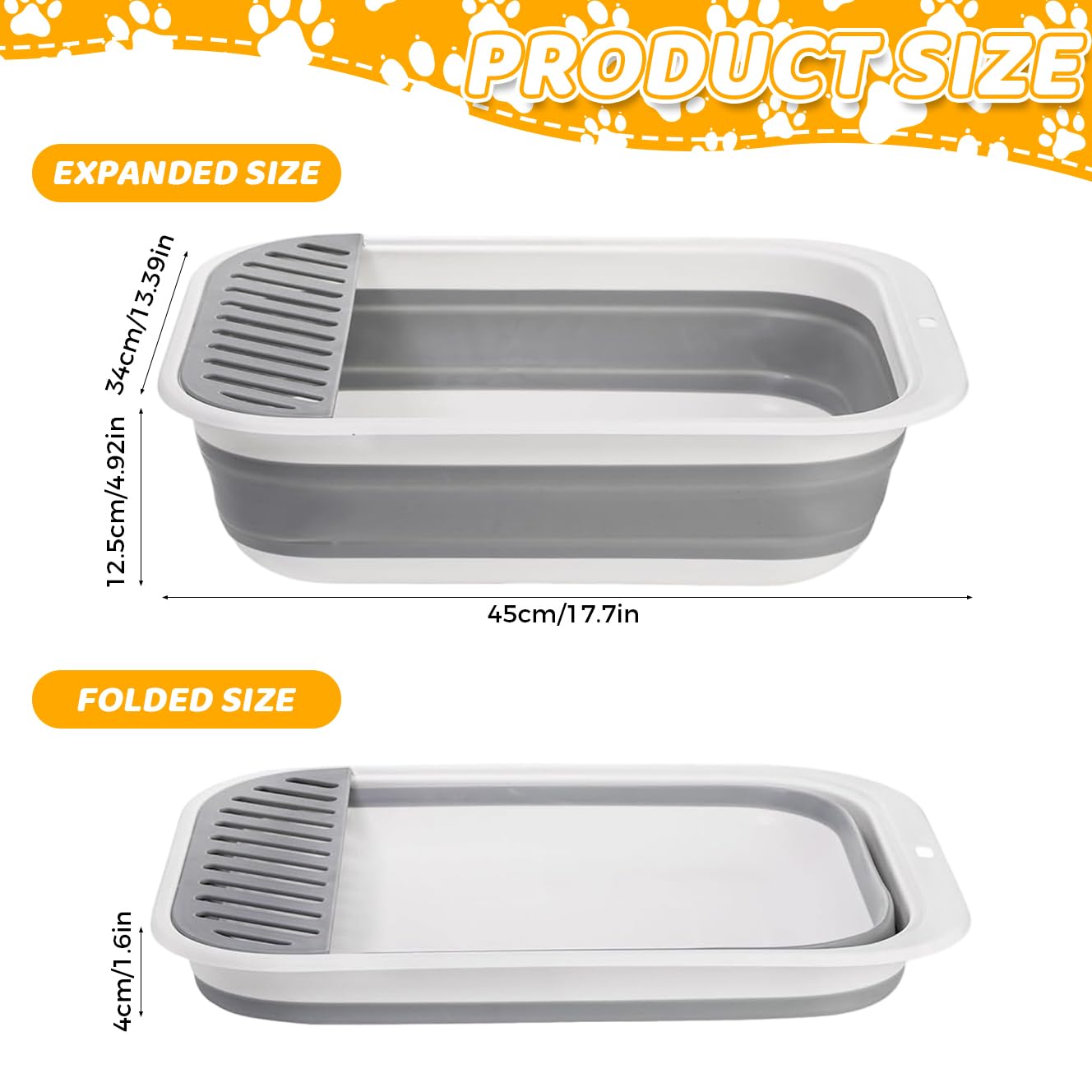 Qpets Collapsible Cat Litter Box for Travel with 45x34x12.5cm Foldable Design | ABS+TPR Build and Anti-Tip Guard