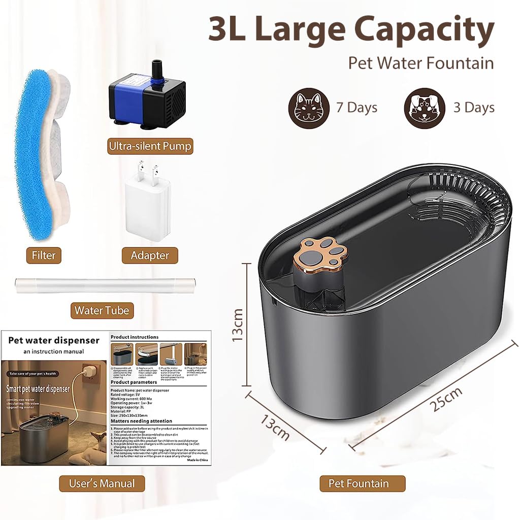- 3L large capacity provides enough clean water for cats or small dogs for several days.