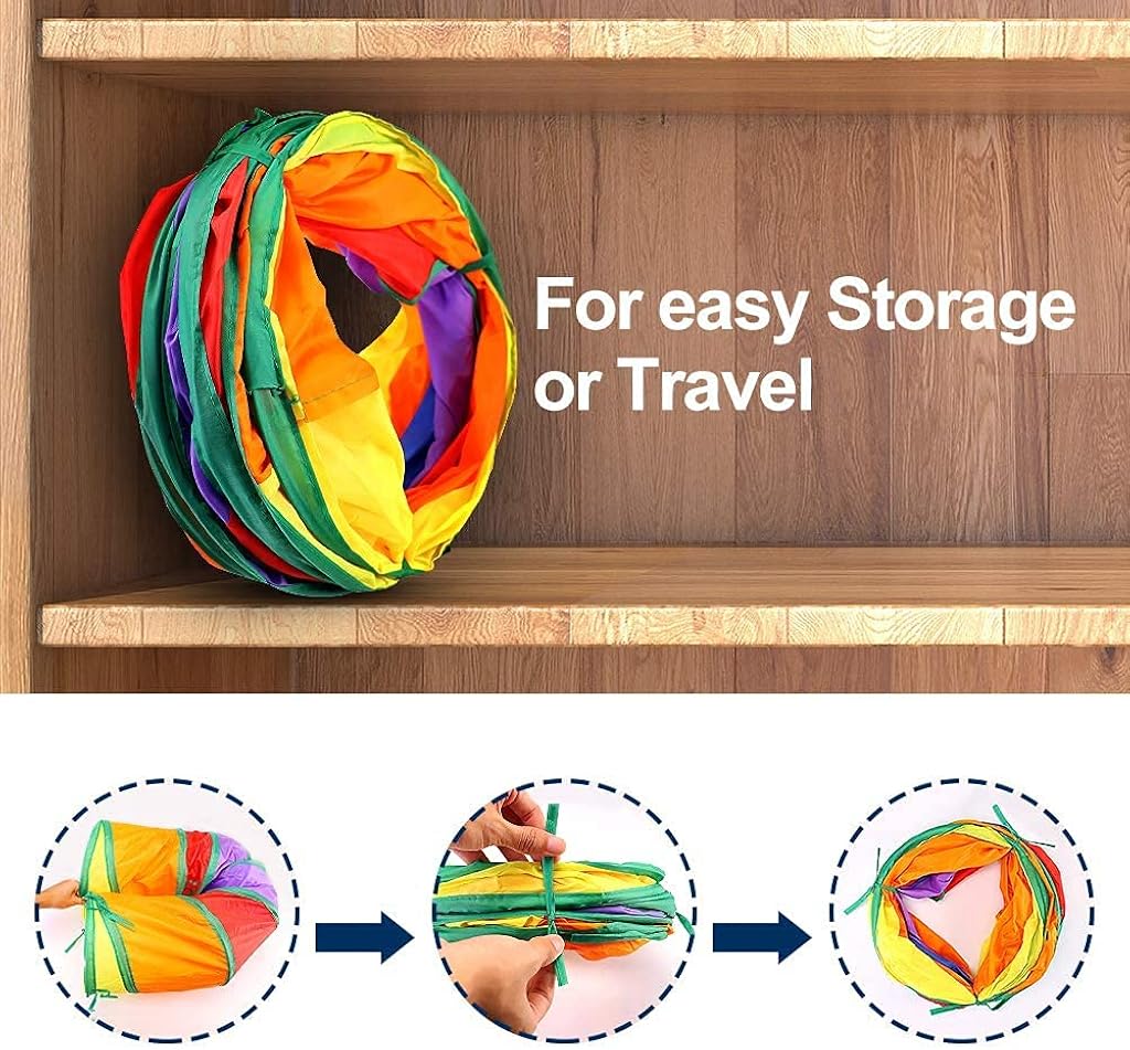 Qpets® Cat Rainbow Wand Toys & Collapsible Tunnel Combo, 2 Pcs Satin Teaser Wands + 2 Way Play Tube for Kittens, Adult Cats – Indoor Exercise, Training, Puzzle, Stress Relief, Hiding Game