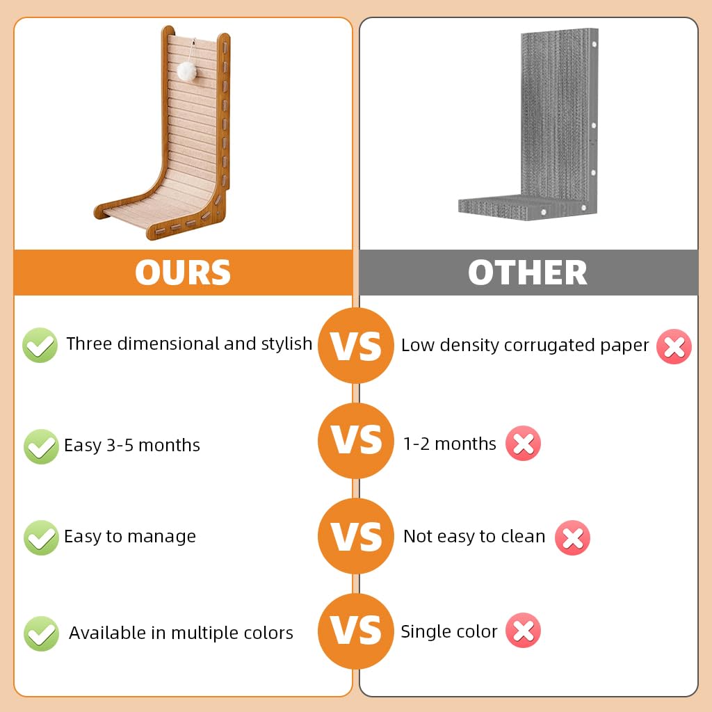 • The L-shaped wooden frame provides durable stability for active scratching and climbing.