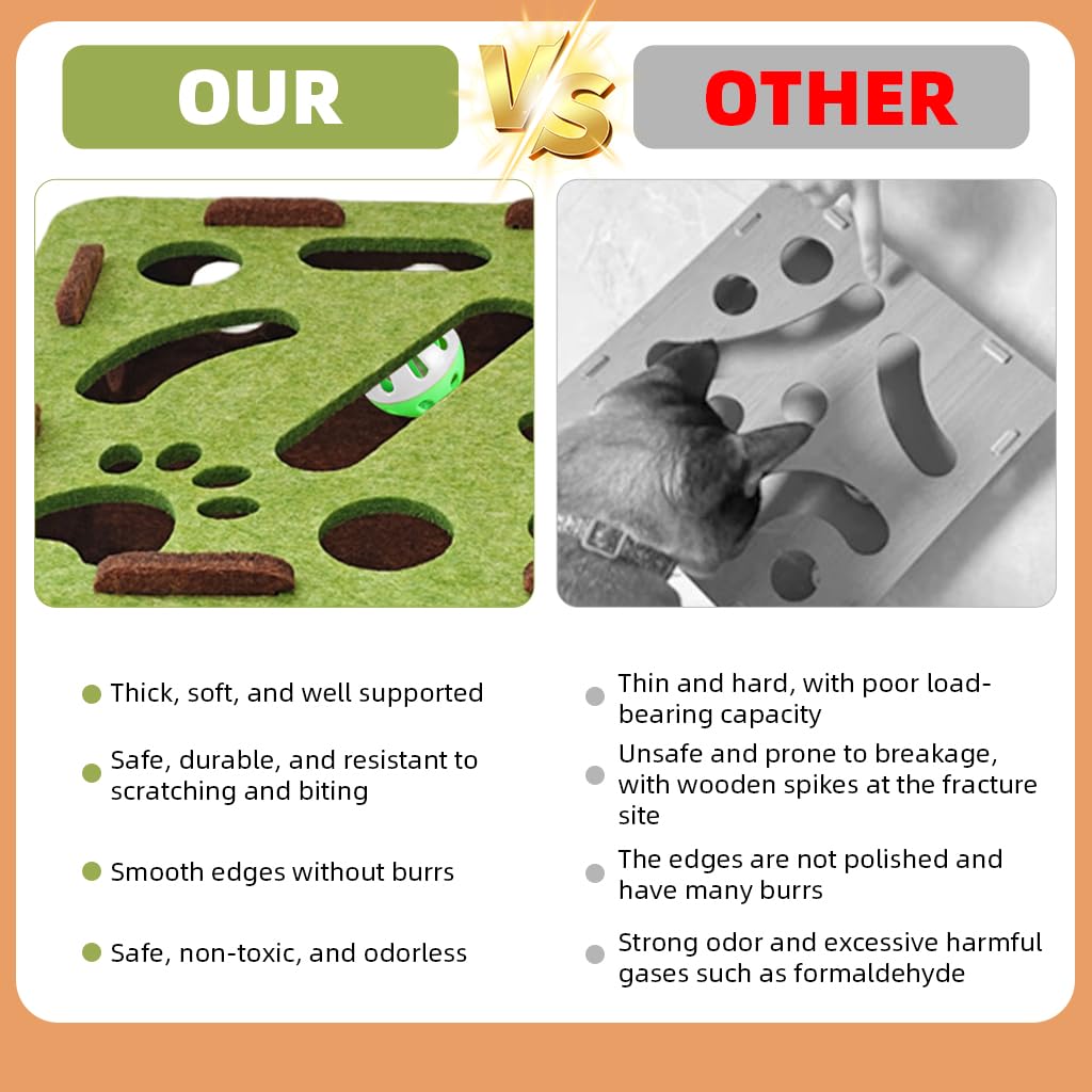 - Three-layer rotating track structure stimulates natural hunting instincts.