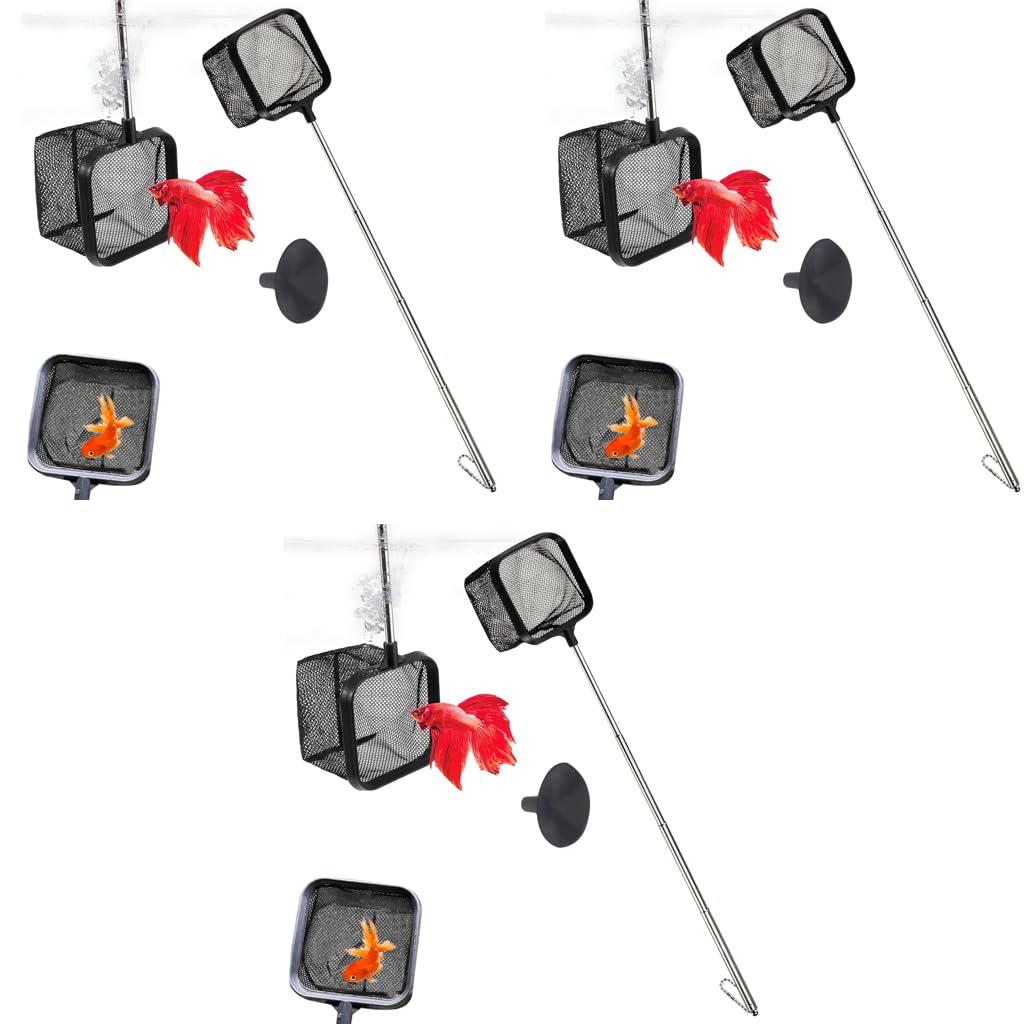 Qpets Fishing Net for Betta Tank featuring 3.1×3.1 in Square Frame and 18 in Retractable Handle | 3PCS