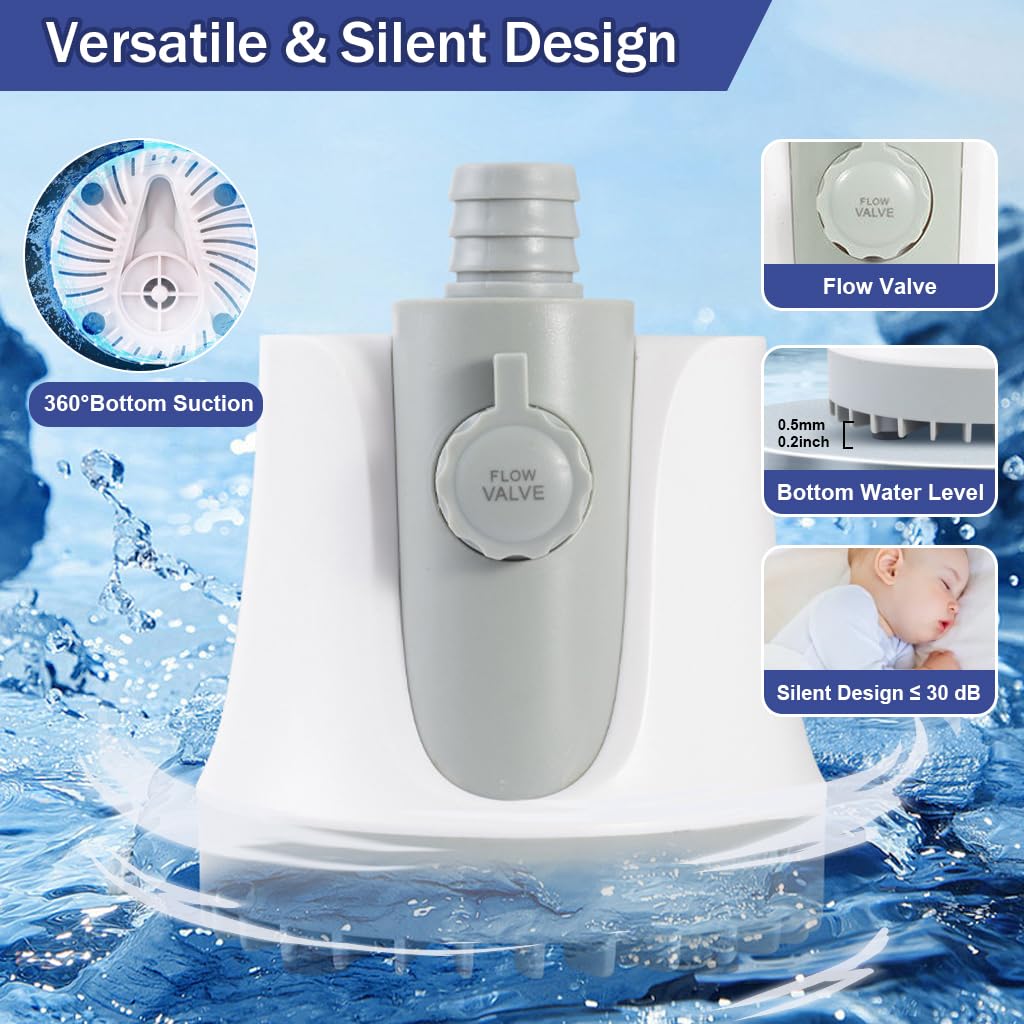 - The adjustable flow valve enables quiet operation and precise water flow control for various aquarium sizes.