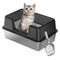 Qpets Stainless Steel Cat Litter Box for Large Cats 50x28x35cm with Elevated Anti‑Splash Guard | Easy to Clean