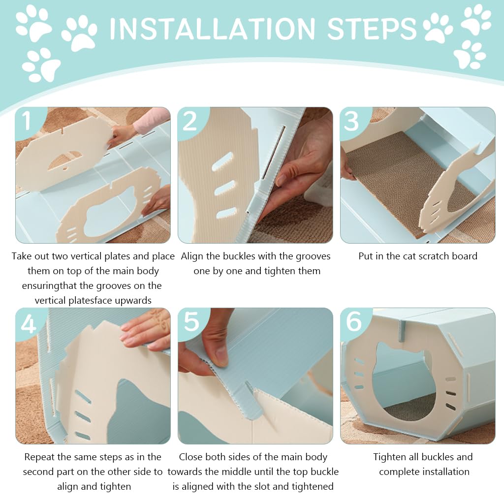 Qpets Assembly Cat House Air Ventilation Cat House Octagon Cat House with Open Roof is designed to provide cats with a comfortable and interactive resting space. Made from durable, waterproof, and BPA-free PP material, this cat house ensures safety and long-lasting use. The octagonal structure with a cartoon cat-face opening offers a playful touch while promoting airflow and comfort. An integrated cat scratcher mat supports natural claw maintenance and reduces furniture damage. The openable roof allows easy access and enhances ventilation, maintaining a fresh environment. Compact in size, it fits conveniently in various living spaces, making it a practical and reliable choice trusted by Qpets for small and medium-sized cats.