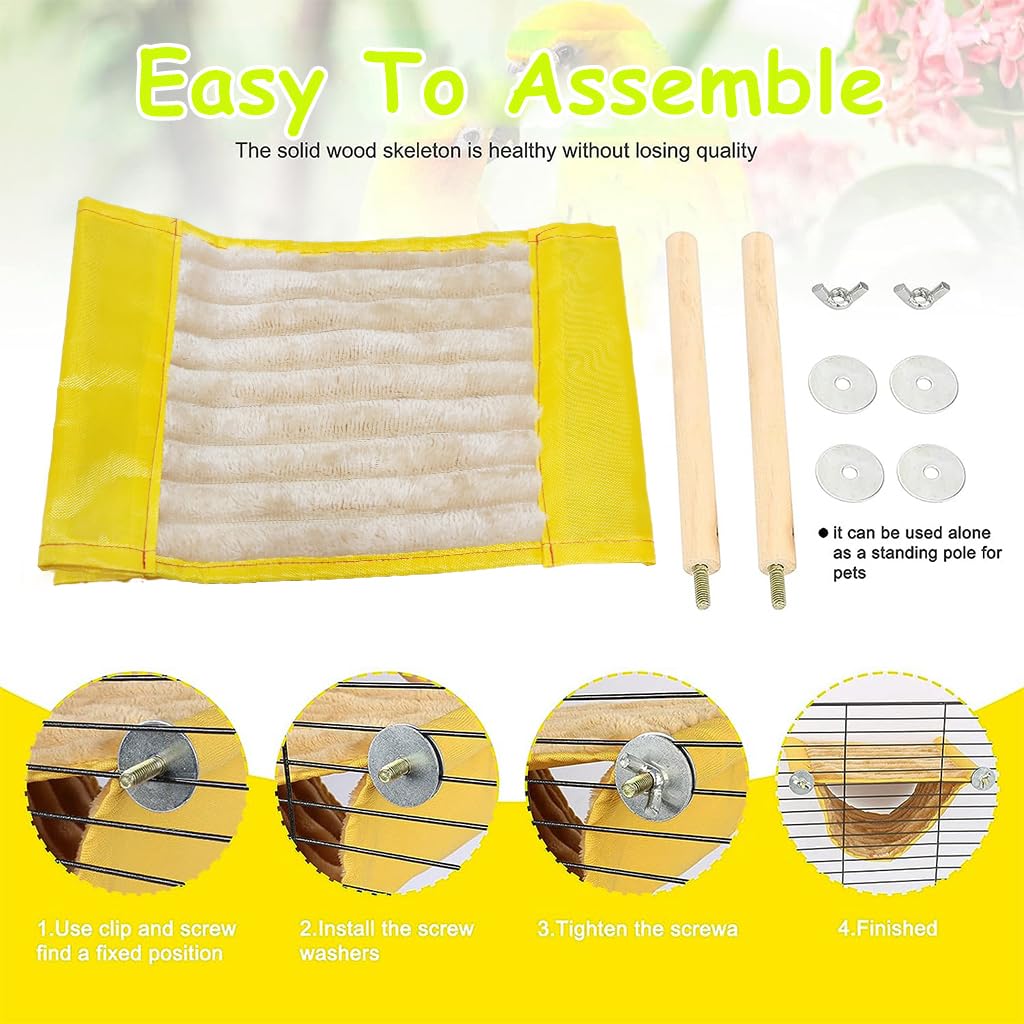 Qpets Bird Nest Parrot Bird Cage is designed as a cozy and functional retreat for small birds such as parrots, parakeets, lovebirds, and cockatoos. Measuring 23 × 18.5 × 12 cm, this yellow hammock combines high-density canvas on the outside with soft fleece inside, creating a warm and comfortable resting space. Its double-layer design encourages birds to climb, explore, and hide, while the included wooden perch allows for quick and tool-free assembly. The removable, machine-washable structure ensures easy cleaning and lasting hygiene. Offering both comfort and stimulation, Qpets provides a reliable, user-friendly bird nest that supports your pets’ well-being and enriches their living environment.