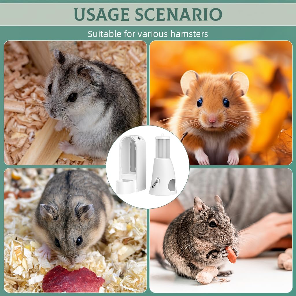 Qpets Hamster Food Feeder Set for Cage with Auto Refill and Hanging Leak-Proof Water Bottle
