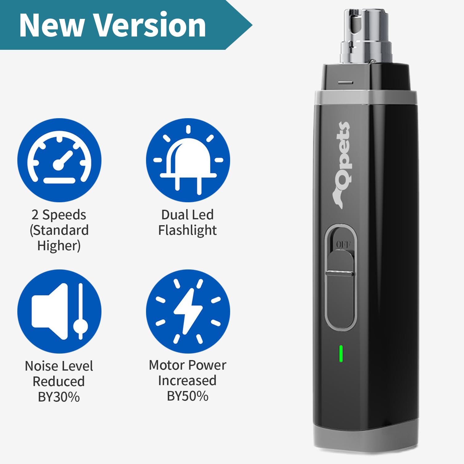Qpets Electric Dog Nail Grinder with Dual LED Lights and 2 Speed Modes | Low Noise 2 PCS