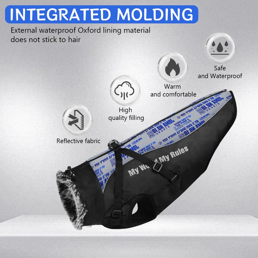 Qpets Winter Dog Clothes for Outdoor Warmth with Dual Leash Rings and Plush Collar | 6XL